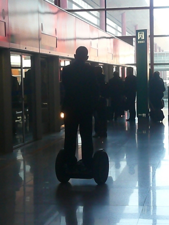空港まで専用車で移動、そこから手続きをすませて、空港内の電車で移動。