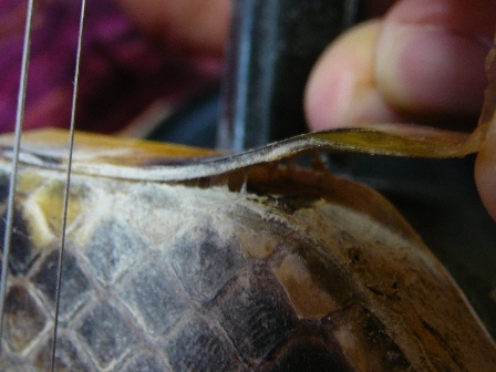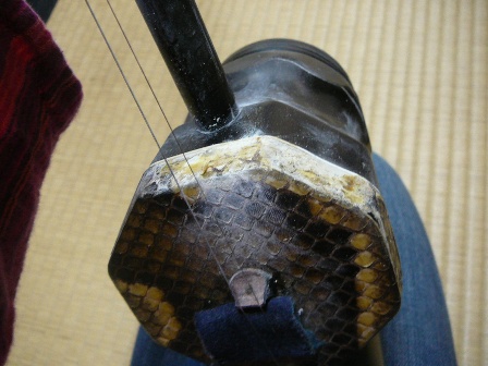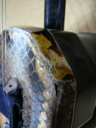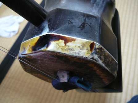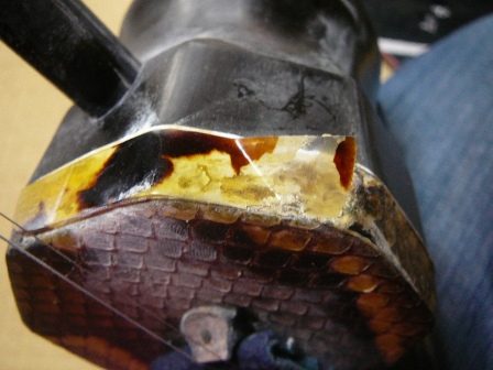 ふと見ると二胡のヘビ皮のカバー?が磨り減って薄くなってました。