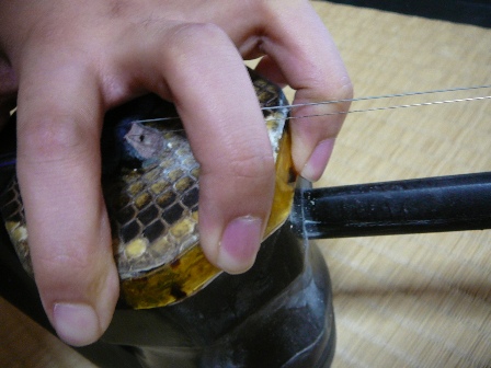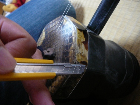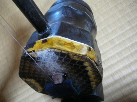 二胡のヘビ皮カバー(デンペン?)なるものの交換をしましたので、