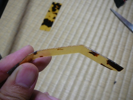 カバーはハサミで切って加工できます。切った後は二胡にあわせて折り曲げておきます。