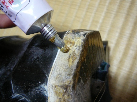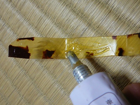 二胡本体にもカバーにもボンドを塗り、15分ほど乾燥させます。