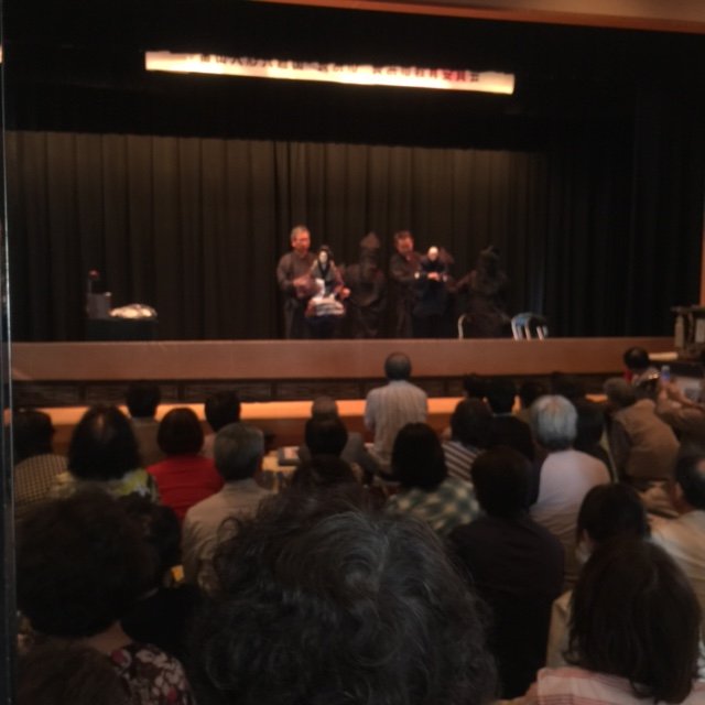 写真は裏で人形浄瑠璃を見せていただいた時の様子と、舞台の様子です。