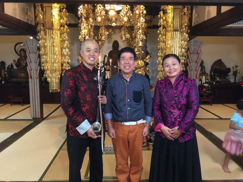 お坊さんとその奥さん、夫婦で二胡・革胡の演奏をしているということで、